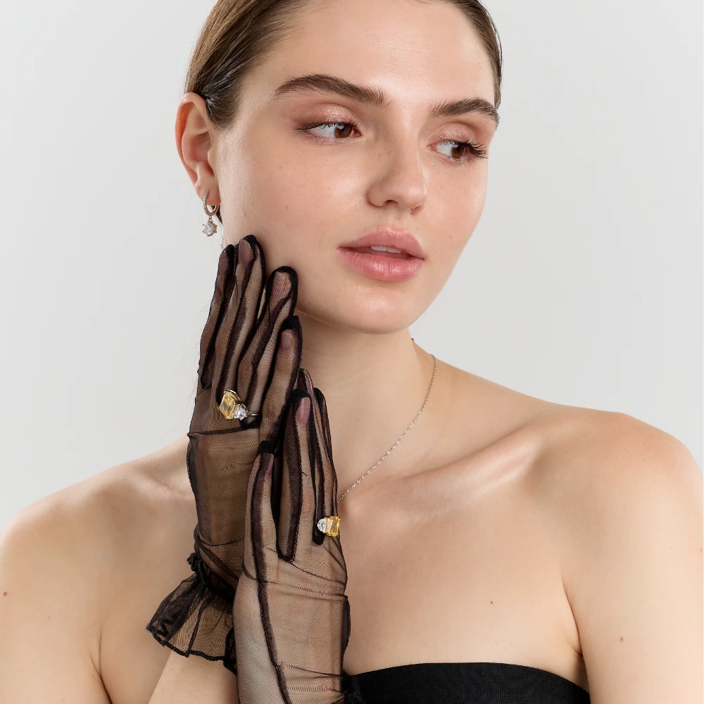 This is jewelry for women who aren't afraid to stand out. Solenne attracts attention and captivates with its exceptional color contrast, symbolizing luxury in its purest form—the perfect choice for special occasions or as a statement of feminine energy and radiance.